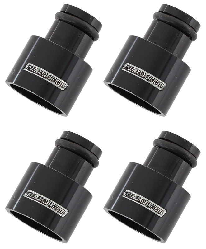 AEROFLOW INJECTOR ADAPTER SHORT 14MM TO11MM FUEL RAIL 4 PACK BLACK