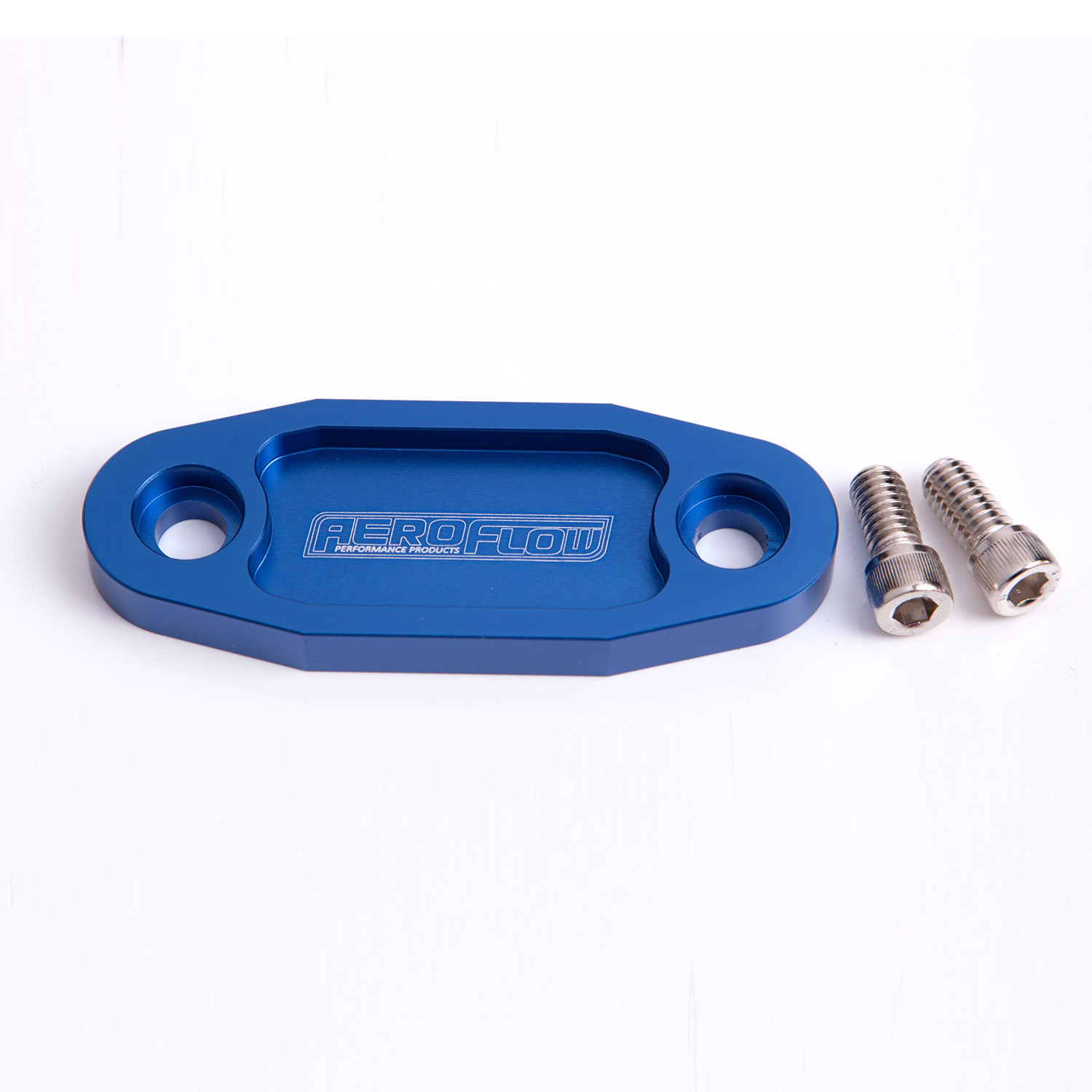 AEROFLOW Billet Fuel Pump Block-Off Plate, Ford V8 302C 351C, Blue