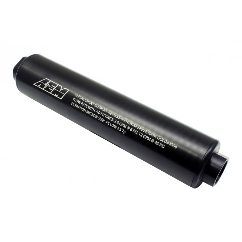 AEM Universal High Volume Fuel Filter Element Overview Description: High Volume Fuel Filter Element (Replacement) for 25-201BK Part Number: 25-202 Supplier: AEM Performance Electronic -10AN Universal High Flow Fuel Filter Replacement for Part #25-201BKFeatures:Direct Replacement7 MicronEasy installationHigh Flow AEM was the first aftermarket company to create a standalone engine management system that plugged into a vehicle’s factory wiring harness, which dramatically simplified the conversion to programmable EFI for racers by mitigating the need for a bespoke wiring harness. AEM Performance continue to create innovative new products that set the standard in the performance aftermarket, delivering the highest level of product integrity and making advanced technologies accessible to the racing masses. AEM Website