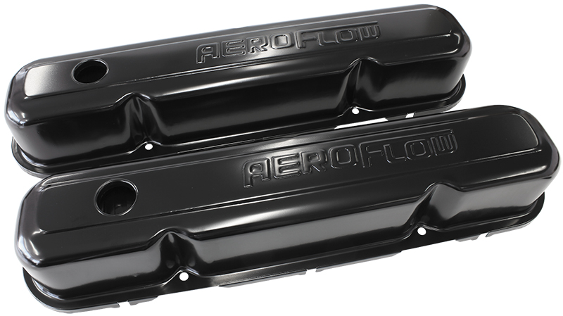 AEROFLOW STEEL VALVE COVERS, CHRYSLER SB, BLACK WITH AEROFLOW LOGO
