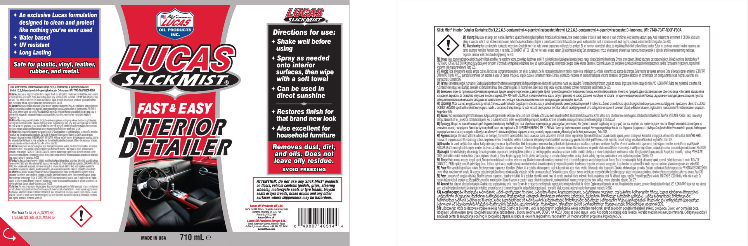 LUCAS Slick Mist Interior Detailer 710ml